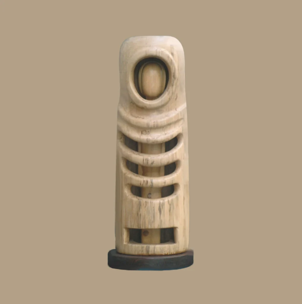 Una ferita non visibile, ma scolpita nell’anima. In “Donna ferita”, il legno di noce – scuro, denso, vibrante – diventa custode di un dolore composto, antico, silenzioso.