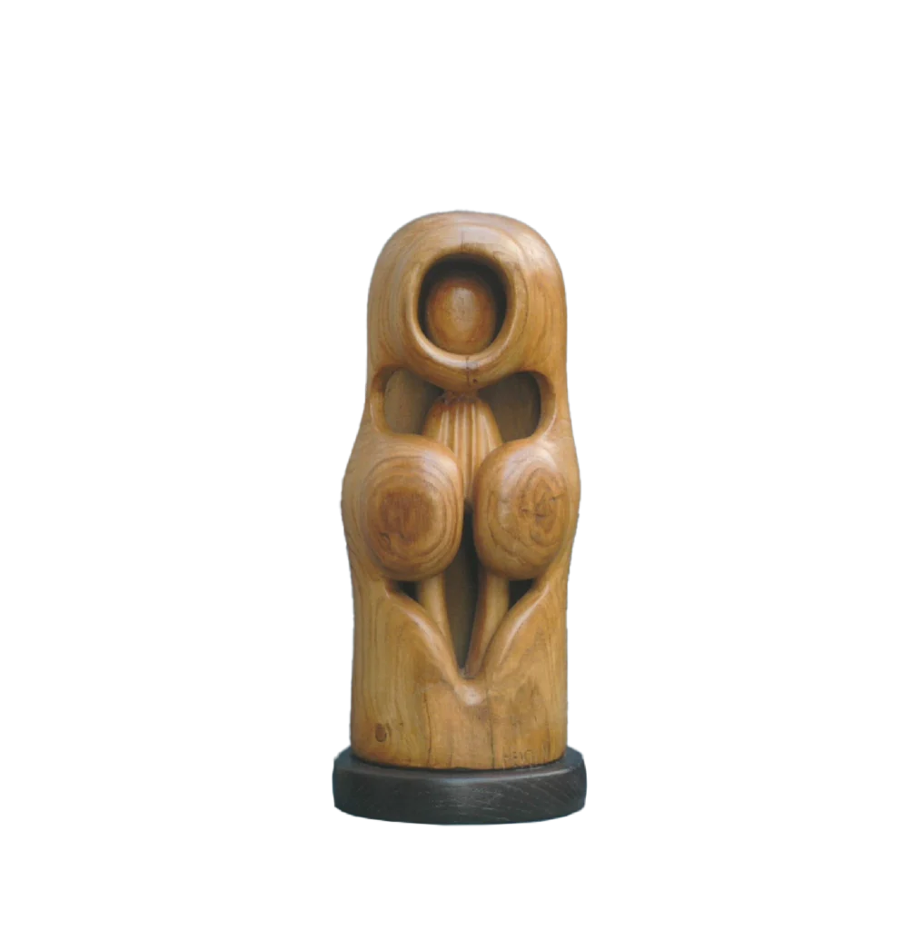 La superficie lavorata a mano conserva la naturalezza delle venature, che sembrano accompagnare il gesto scultoreo, amplificandone il senso emotivo. L’abbraccio è un’opera che parla senza parole, richiamando il bisogno umano di connessione profonda, senza tempo né età.