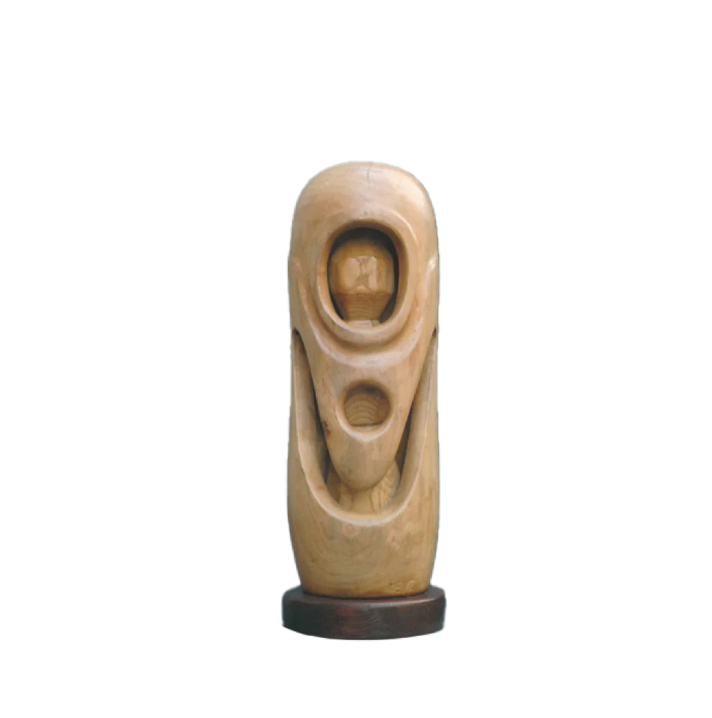 Scultura a mano in legno di salice. L’opera trasmette con delicatezza l’energia dell’abbraccio materno, amplificata dalla flessibilità naturale del materiale.